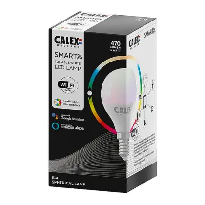 Beschreibung Calex Smart Kugelförmig LED Glühbirne E14 5W 470lm 2200-4000K | Tuya Wifi - Color Ambiance + Abstimmbares Weiß