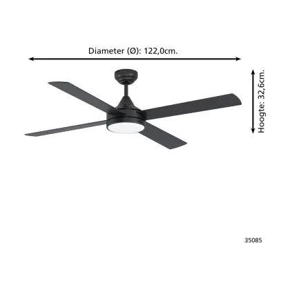 Der Eglo Deckenleuchte Trinidad Stahl 19W 2300lm - 830-840-865 CCT | IP20 überzeugt durch sein modernes Design. Er kombiniert leisen Betrieb mit starker Luftzirkulation – ideal für alle, die ein kühles Raumklima.