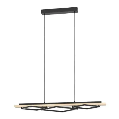 Eglo Pendelleuchte Boyal Holz Schwarz, Braun 42W 3500lm - 830 Warmweiß | Dimmbar