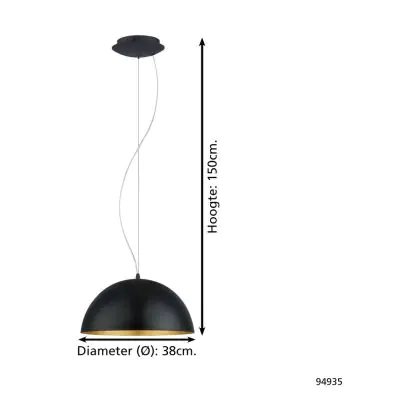 Beschreibung Eglo Pendelleuchte Gaeta 1 Stahl Schwarz Gold | IP20 - Geeignet für 1x E27