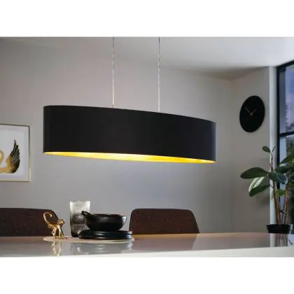 Die Eglo Pendelleuchte Maserlo Stahl Satin-Nickel | Geeignet für 2x E27 sorgt für eine angenehme Ausleuchtung und punktet durch modernes Design. Diese Leuchte ist speziell zur Montage an der Decke vorgesehen.
