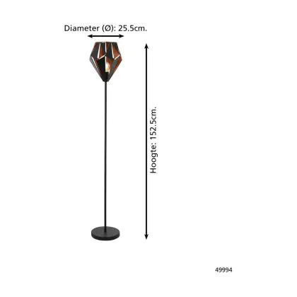 Beschreibung Eglo Stehlampe Carlton 1 Stahl Schwarz Bernstein | IP20 - Geeignet für 1x E27