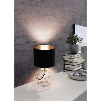 Eglo Tischlampe Carlton 2 Stahl Bernstein Schwarz | IP20 - Geeignet für 1x E14