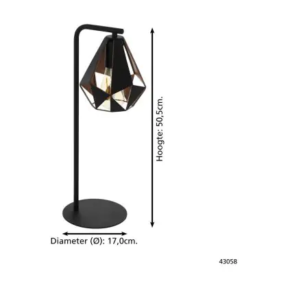 Beschreibung Eglo Tischlampe Carlton 4 Stahl Schwarz Bernstein | IP20 - Geeignet für 1x E27