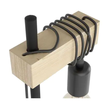 Beschreibung Eglo Tischlampe Townshend Stahl Holz Schwarz Braun | IP20 - Geeignet für 1x E27