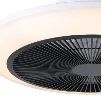 Durch die geringe Bauhöhe von nur 145 mm ist der Ventilator ideal für Räume mit normaler oder niedriger Deckenhöhe. Die moderne Kombination aus Weiß und Schwarz fügt sich harmonisch in verschiedenste Einrichtungsstile ein.