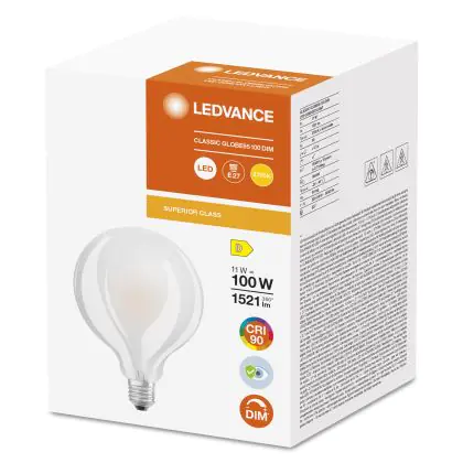 Die Ledvance Superior Classic LED E27 Globe Matt 11W 1521lm - 927 Extra Warmweiß | Höchste Farbwiedergabe ist eine effiziente E27 LED-Lampe und der perfekte Ersatz für Ihre konventionellen 100W Lampen mit E27-Sockel. Zudem strahlt sie Licht in der Farbtemperatur 2700K - Extra Warmweiß aus und punktet durch eine lange Lebensdauer.