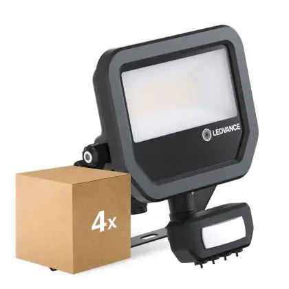 Der Mehrfachpackung 4x Ledvance LED-Scheinwerfer Aluminium Schwarz 17W 2400lm 100D - 840 Kaltweiß | IP65 - Bewegungs- und Lichtsensor - Symmetrisch ist ein Scheinwerfer und strahlt Licht in der Farbtemperatur 4000K - Kaltweiß aus. Zudem punktet der LED-Scheinwerfer durch eine lange Lebensdauer.