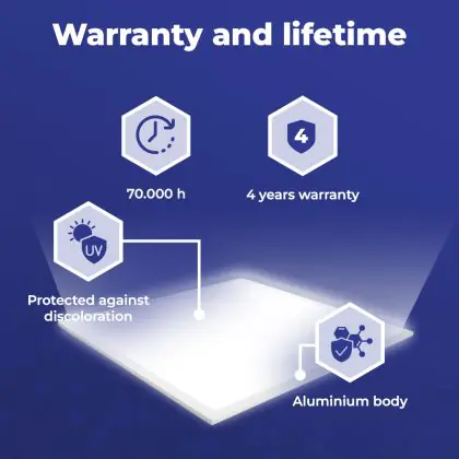 Wir von BeleuchtungDirekt haben mit dem LED-Panel von Noxion gute Erfahrungen gemacht. Daher bieten wir Ihnen für dieses Produkt eine Garantie von 4 Jahre an.