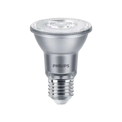 Der Mehrfachpackung 6x Philips Master Value LED Glühbirne Reflektor E27 PAR20 6W 500lm 40D - 927 Extra Warmweiß | Höchste Farbwiedergabe - Dimmbar - Ersatz Für 50W ist ein leistungsstarker LED-Strahler mit E27-Sockel. Er kommt mit einer hohen Lebensdauer von 25000 Stunden daher und spart Ihnen somit nicht nur Energie-, sondern auch Austausch- und Wartungskosten. Im Preis ist zudem eine All-In-Garantie von 5 Jahre enthalten.