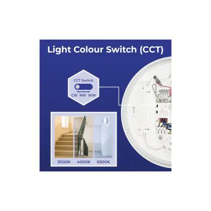 Die Noxion LED-Wand- und Deckenleuchte Corido V2 Weiß 16W 1600lm 830-840-865 CCT | IP44 - Bewegungs- und Lichtsensor ist eine Feuchtraumleuchte. Sie strahlt Licht in der Farbtemperatur aus und punktet durch eine lange Lebensdauer. Diese Leuchte ist speziell zur Verwendung in Feuchträumen (Keller, Waschräume, etc.) vorgesehen.