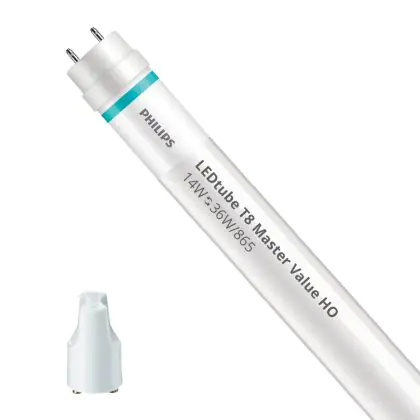 Das Kürzel HO in der Produktbezeichnung steht für High Output. Diese Produkte arbeiten besonders effizient und verfügen über eine bestmögliche Lichtausbeute. Das bedeutet, der Lumenwert, also die Helligkeit, pro verbrauchtem Watt ist besonders hoch. Für die Philips LEDtube EM HO 14W 865 120cm (MASTER Value) liegt die Lichtausbeute bei 150 lm/W. Zum besseren Vergleich: Herkömmliche Leuchtstoffröhren erreichen im Schnitt gerade einmal 70 lm/W.