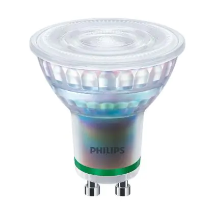 Die Lumeneffizienz des GU10 LED-Strahlers von Philips liegt bei lm/W. Herkömmliche GU10-Strahler hingegen besitzen ein Lumen zu Watt-Verhältnis von 10-15 lm/W. Somit sparen Sie allerhand Energiekosten. Hinzu kommt die lange Lebensdauer des GU10 LED-Strahlers von 50000. Somit spendet er deutlich länger Licht als ein herkömmlicher Halogenstrahler, der mit nur rund 3000 Stunden daherkommt. Das spart Ihnen zusätzlich Austausch- und Wartungskosten.