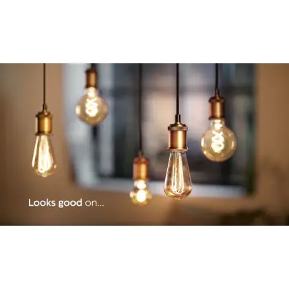 Die Philips Classic LEDglobe Vintage ist eine moderne LED-Lampe mit einem E27-Sockel. Sie zeichnet sich durch einen effizienten Energieverbrauch, eine lange Lebensdauer und ein ansprechendes Vintage-Design aus. Sie spendet Licht in der Farbtemperatur extra Warmweiß und spart 80% an Energie im Vergleich zu herkömmlichen Leuchtmitteln ein.