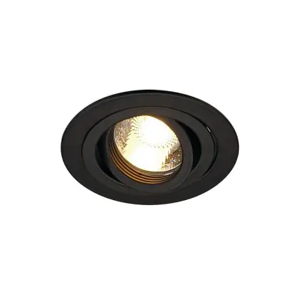 Der SLV LED-Spot New Tria rund Schwarz | Ausschnitt 78mm - Max 50W GU10 ist ein LED-Einbaustrahler, welcher Licht in der Farbtemperatur ausstrahlt und durch eine lange Lebensdauer punktet. Die Einbauleuchte ersetzt konventionelle Halogenstrahler.