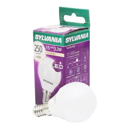 Die Sylvania ToLEDo Ball E14 Matt zeichnet sich durch einen geringen Stromverbrauch von nur 4 Watt aus. Dies ermöglicht Ihnen erhebliche Energieeinsparungen. Die LED hat einen E14-Sockel, sowie eine P45-Ballform, und spendet warmes Licht mit einer Farbtemperatur von 2.700 Kelvin.