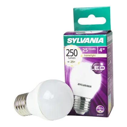 Die Sylvania ToLEDo Ball E27 Matt zeichnet sich durch einen geringen Stromverbrauch von nur 4 Watt aus. Dies ermöglicht Ihnen erhebliche Energieeinsparungen. Die LED hat einen E27-Sockel, sowie eine P45-Ballform, und spendet warmes Licht mit einer Farbtemperatur von 2.700 Kelvin.